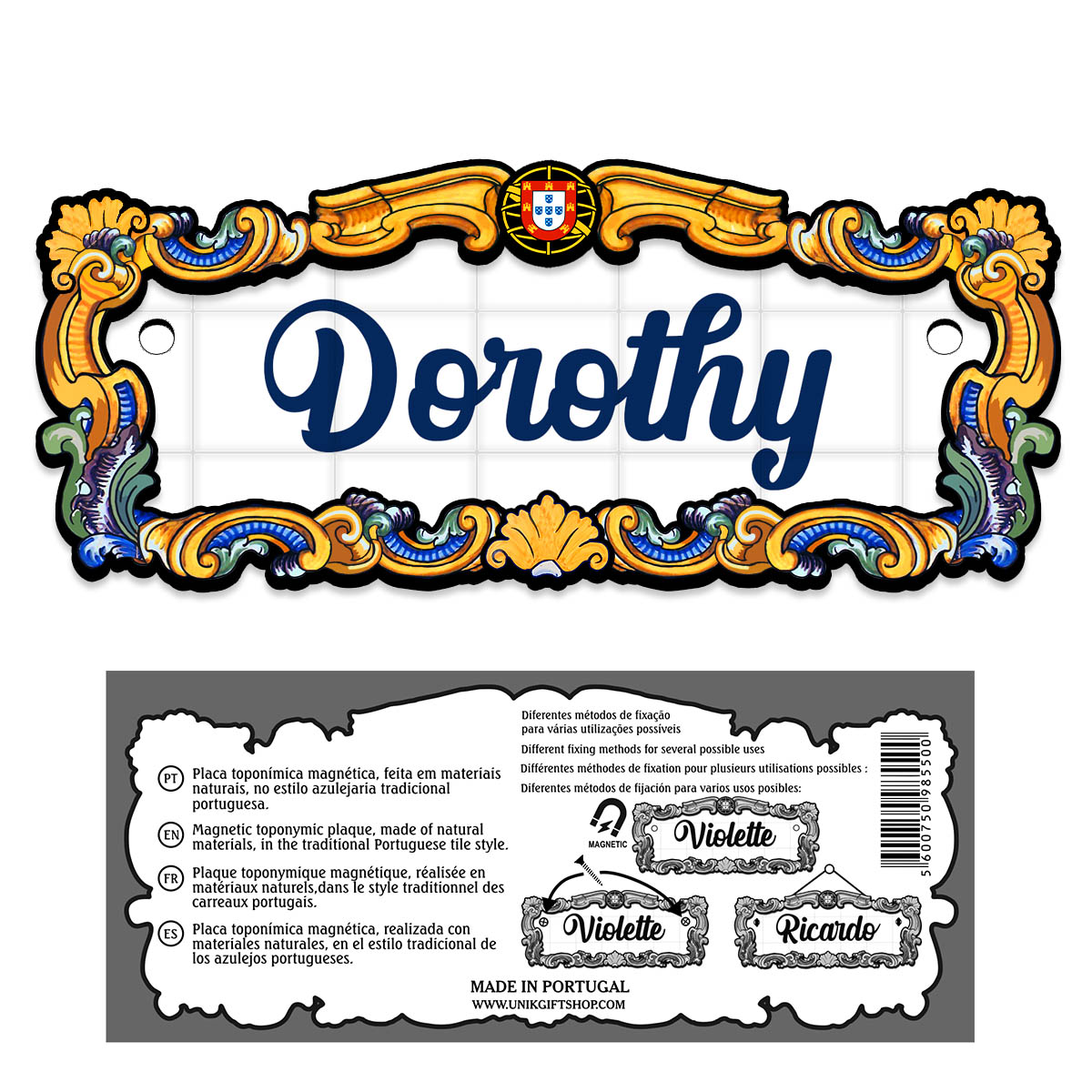 Magnetic toponymic plaque, made of natural materials, in the traditional Portuguese tile style, 14x6cm.
