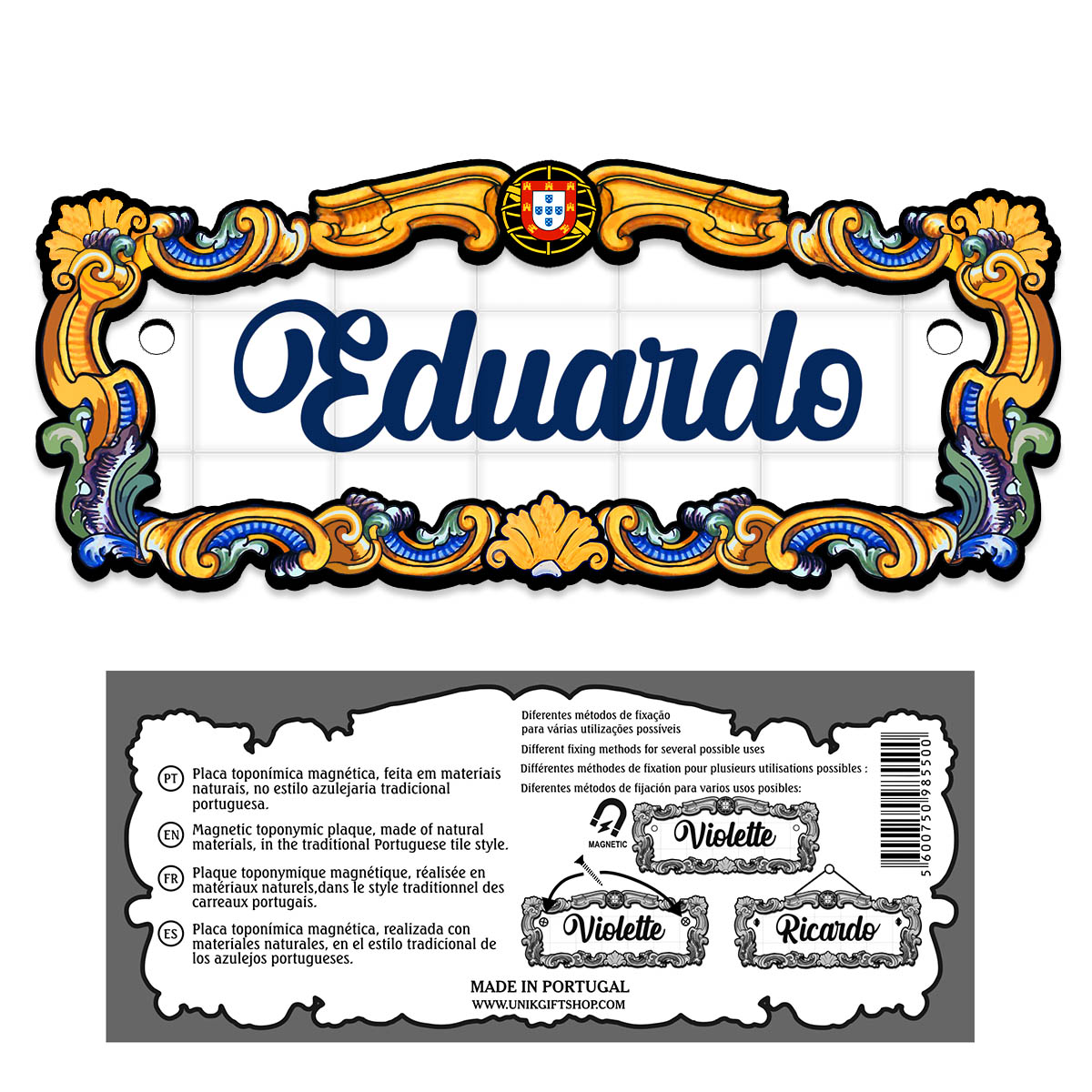 Magnetic toponymic plaque, made of natural materials, in the traditional Portuguese tile style, 14x6cm.