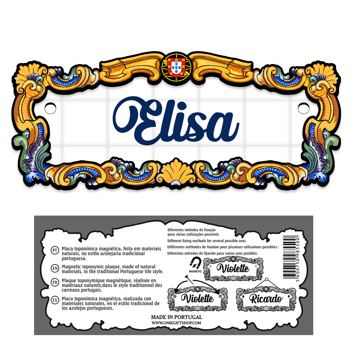 Magnetic toponymic plaque, made of natural materials, in the traditional Portuguese tile style, 14x6cm.