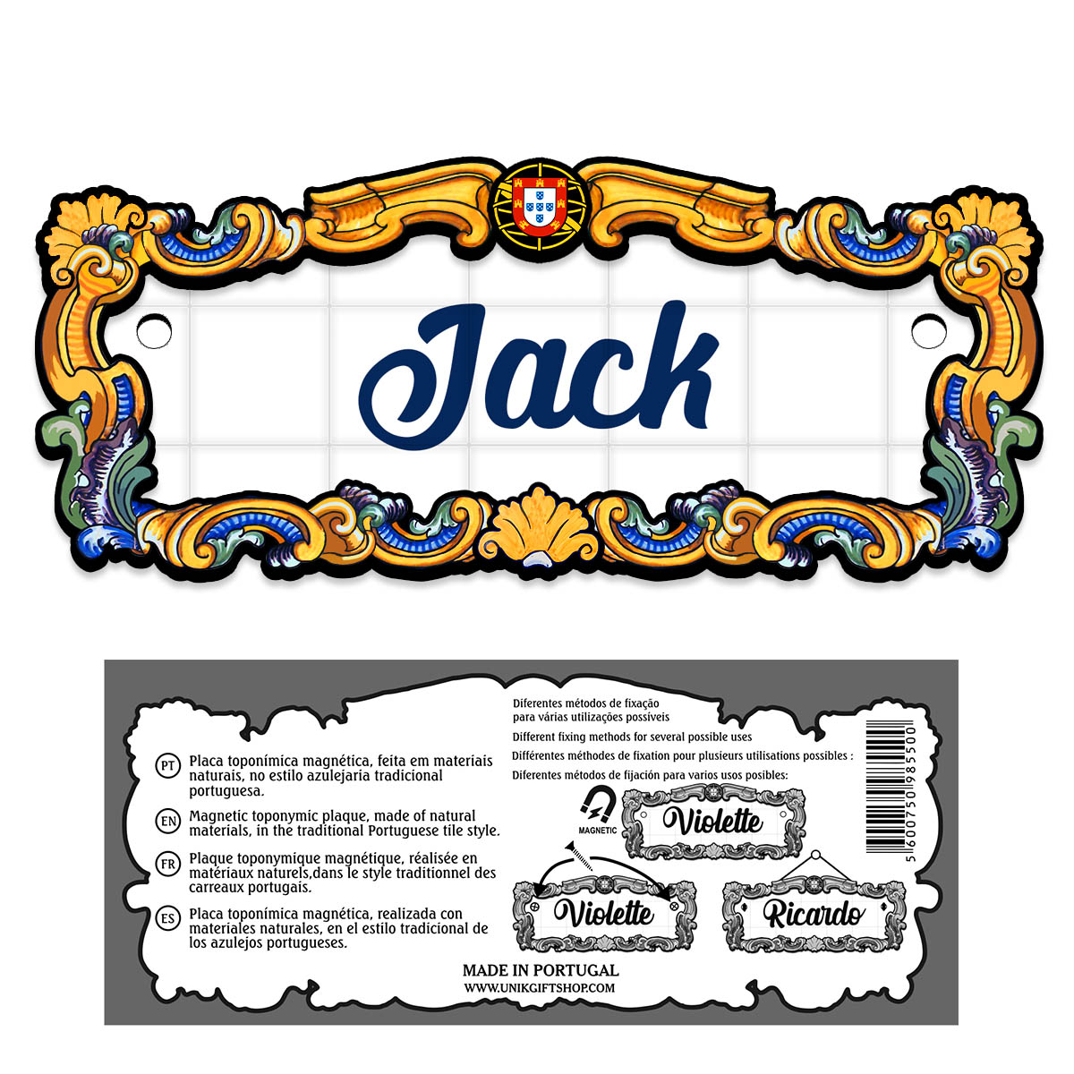 Magnetic toponymic plaque, made of natural materials, in the traditional Portuguese tile style, 14x6cm.