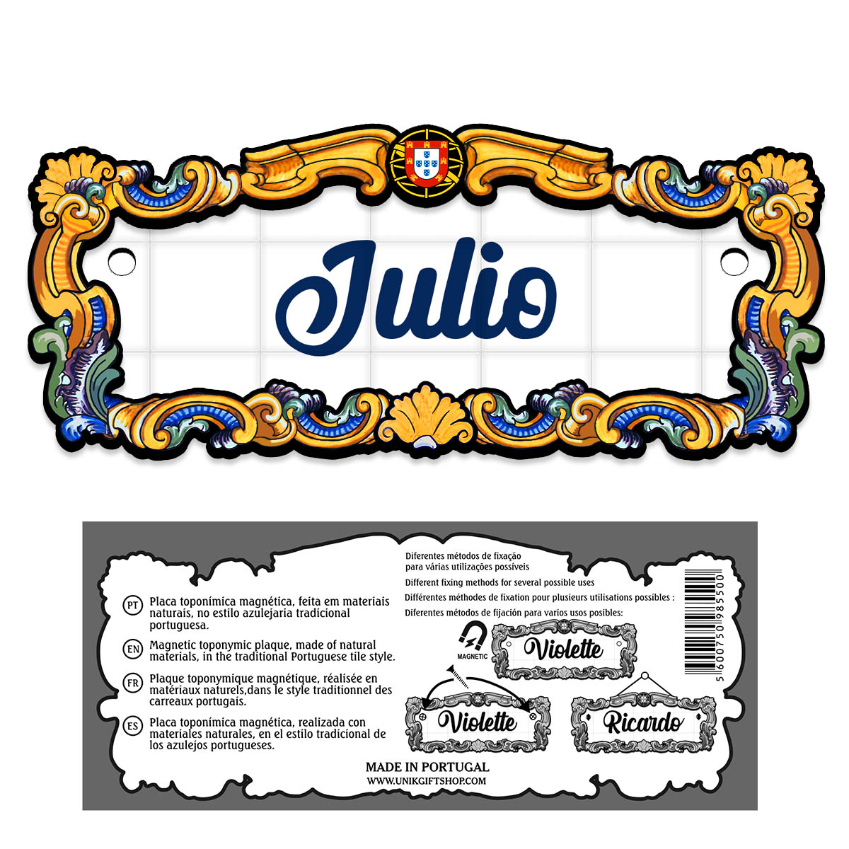 Magnetic toponymic plaque, made of natural materials, in the traditional Portuguese tile style, 14x6cm.
