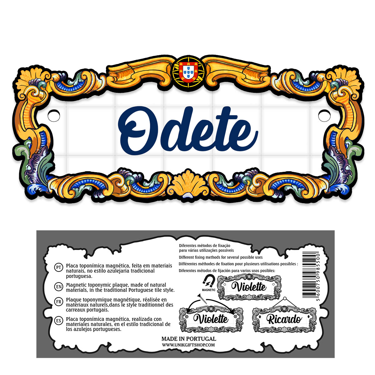 Magnetic toponymic plaque, made of natural materials, in the traditional Portuguese tile style, 14x6cm.