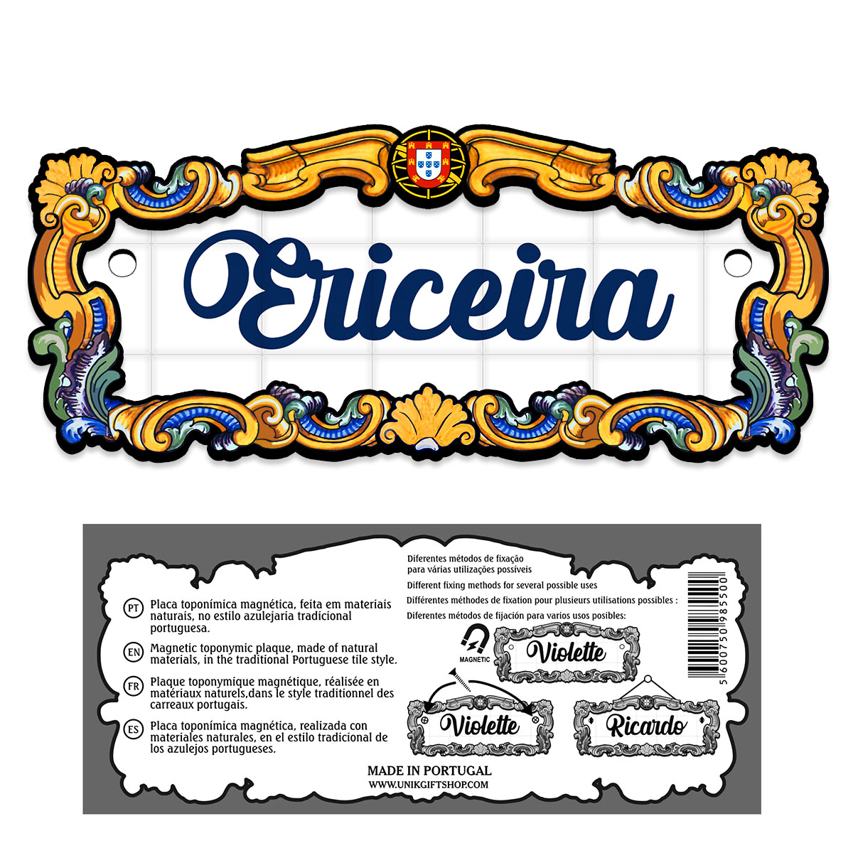 Magnetic toponymic plaque, made of natural materials, in the traditional Portuguese tile style, 14x6cm.